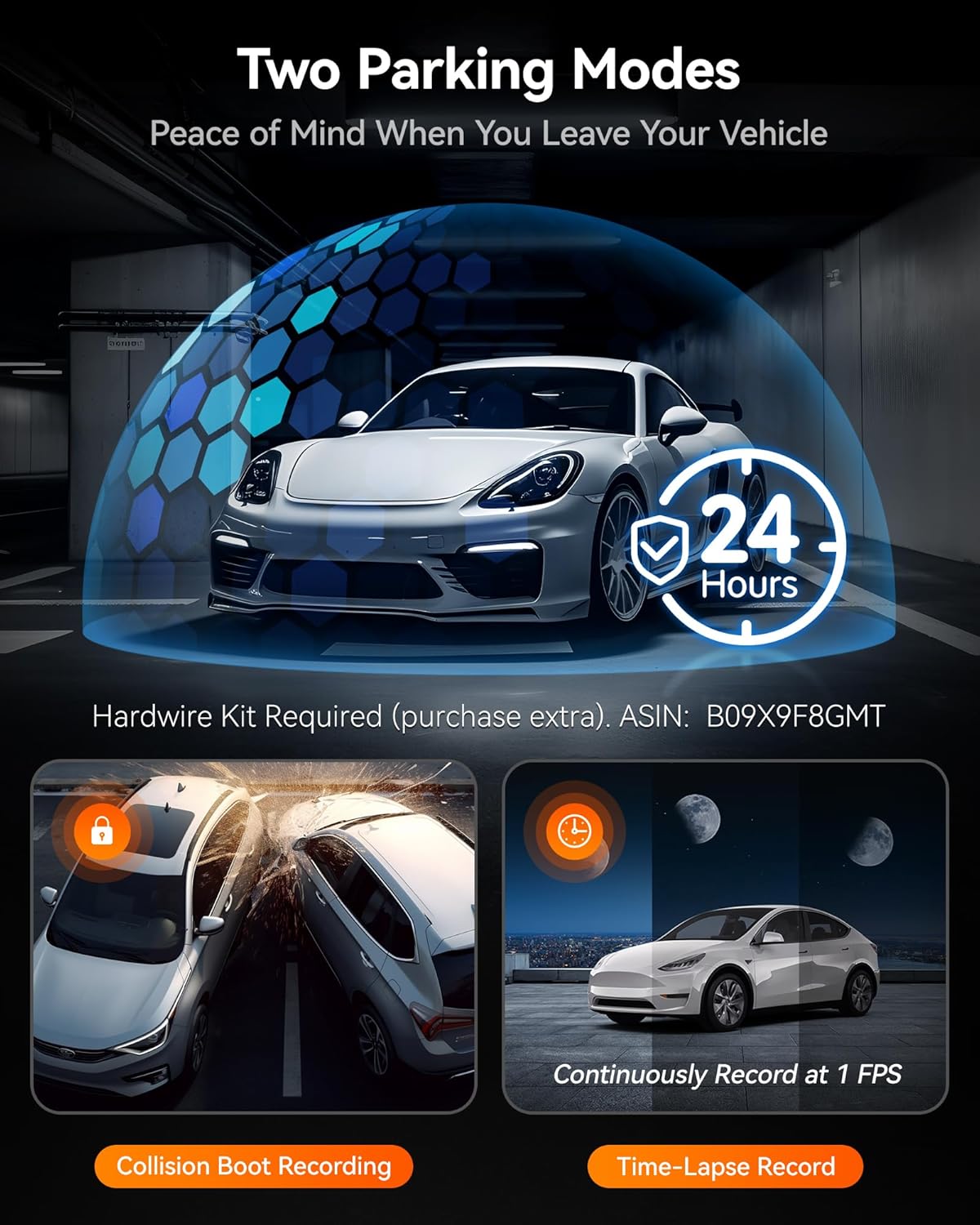 24H Time-Lapse Parking Mode: Continuous monitoring of your vehicle even when parked.