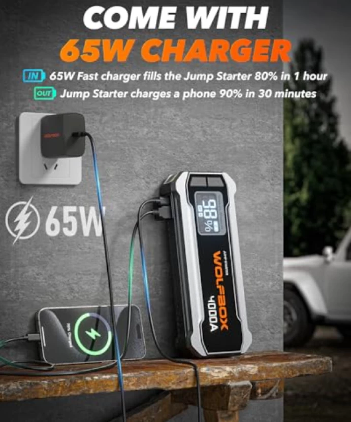 Powerful Jump Starter: Delivers fast and reliable vehicle starting.